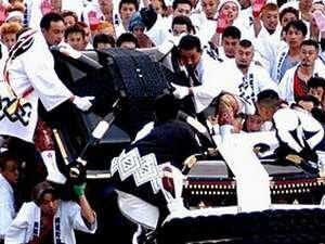 鉢合わせ(けんか神輿)は道後温泉駅前でも行われます。